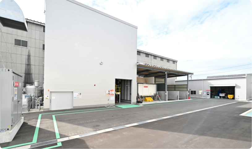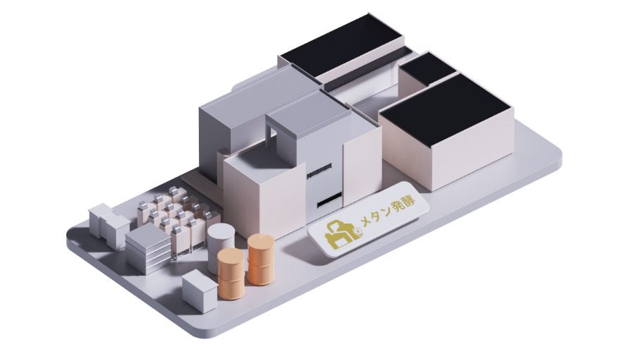 近隣の食品工場等から廃棄物を回収し、メタン発酵を行い、バイオガスを生成します。バイオガスは、発電や都市ガス代替の燃料に利用されます。