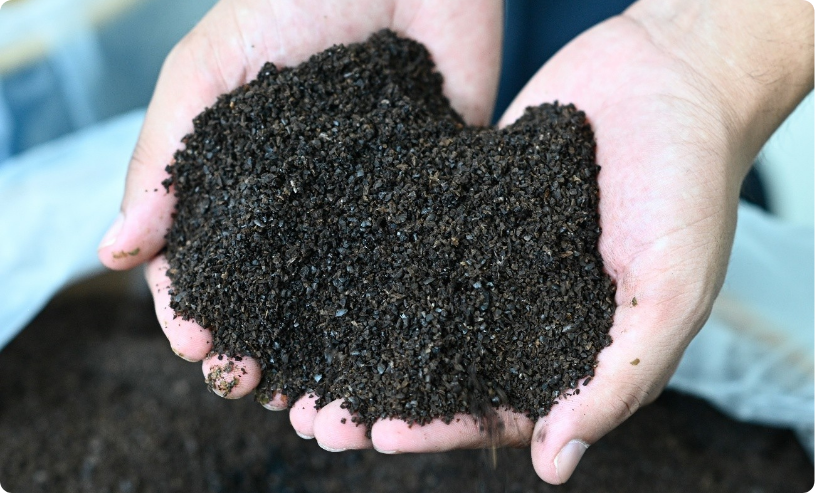 発酵槽から出てくる消化液は、脱水機で固形分と液分に分けられ、固形分は肥料として利用することができます。化学肥料に比べて環境負荷が少なく持続可能な農業へ貢献できます。