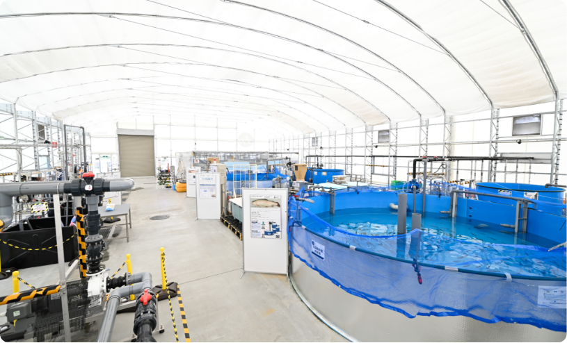 天候に左右されず、場所を選ばず養殖することが可能な陸上養殖プラントや周辺機器の開発を行っています。サーモン系の魚を中心に飼育し魚種ごとに最適な機器・育成法を確立し養殖プラントと育成ノウハウをパッケージで提供する事業を展開しています。